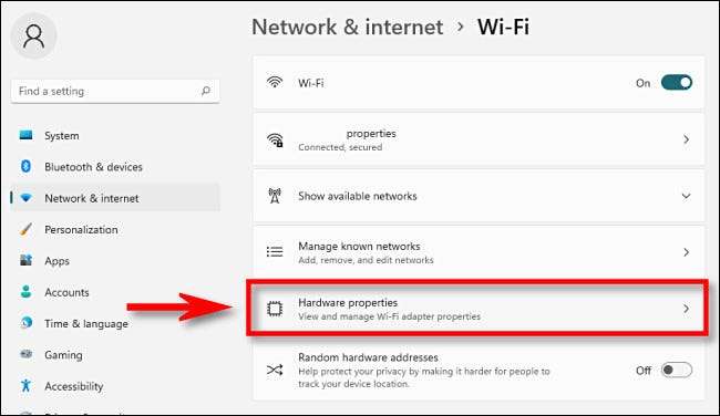 בדף המאפיינים של חיבור הרשת, ובחר "מאפייני חומרה."