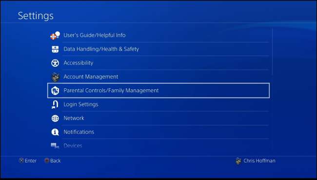 כדי לנהל את חשבונות המשפחה שלך, עבור אל הגדרות> בקרת הורים / ניהול משפחה באותו אופן שלמעלה ובחר "ניהול משפחתי".