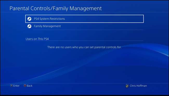 בקרת ההורים כאן מועילה להגבלת הגישה לדברים - הגבלת הגישה למשחקים ולמדיה לפי טווחי הגילאים שלהם וחסימת גישה לאתרים, למשל. למרבה הצער, אין אפשרויות להגביל ילדים לשימוש רק בקונסולה בשעות מסוימות ביום, מגבלות זמן למשחקים ומגבלות זמן אחרות שעשויות להיות שימושיות.