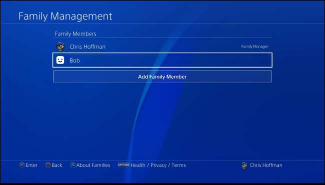 אם תבחר חשבון משתמש, תוכל לשנות את הגדרות בקרת ההורים עבור אותו חשבון, לבחור אם בן המשפחה יכול להצטרף לרשת PlayStation ולמחוק את פרופיל המשתמש מהמערכת שלך, אם תרצה בכך.