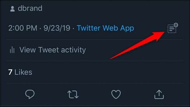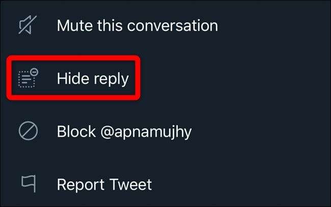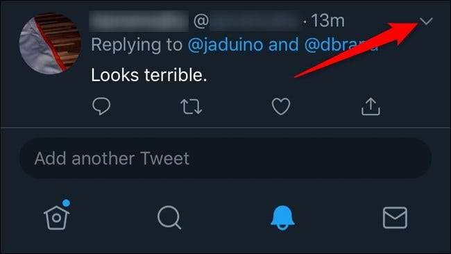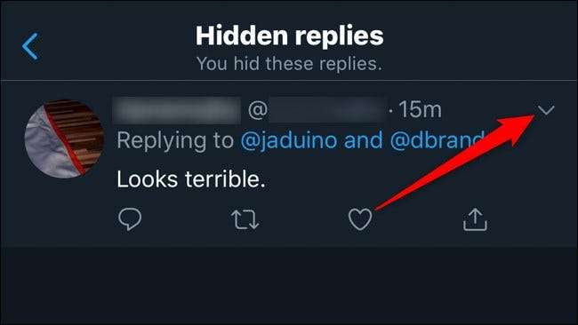 לאחר מכן, אתר את התשובה שברצונך להסתיר ואז לחץ או הקש על החץ למטה המשויך לציוץ.