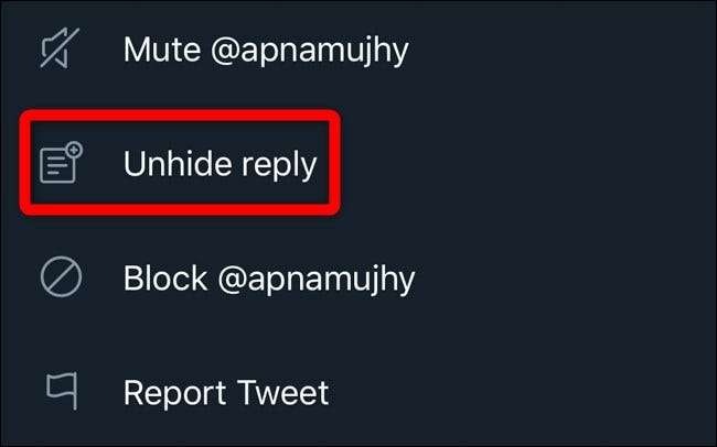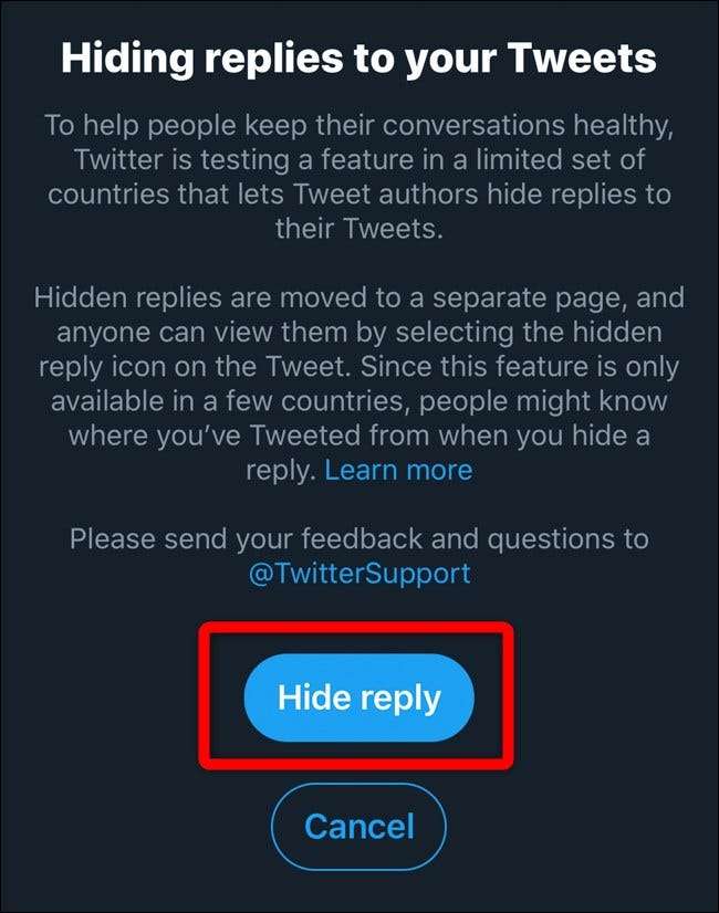 כדי לבטל הסתרה של תשובה מהציוץ שלך, לחץ או הקש על כפתור "תשובה מוסתרת".
