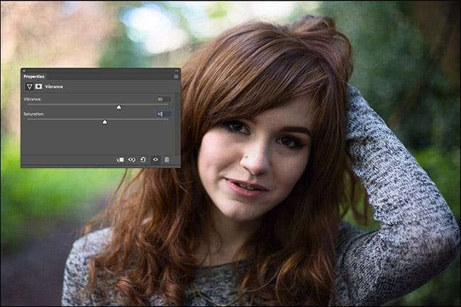 יש שני מחוונים. רטט ורוויה. רטט מרווה את הצבעים הכי פחות רוויים בתמונה ואילו הרוויה רוויה הכל באופן שווה.