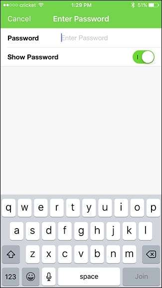 הזן את הסיסמה עבור רשת ה- Wi-Fi שלך והקש על "הצטרף".