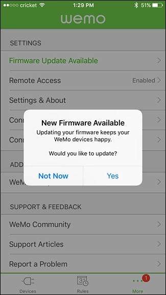 המתן מספר רגעים עד שיתחבר לרשת ה- Wi-Fi שלך. לאחר סיום, סביר להניח שתקבל חלון קופץ שאומר שיש עדכון קושחה זמין. לחץ על "כן" כדי לעדכן את הקושחה.