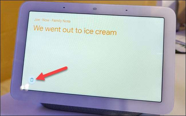 כדי למחוק את ההערה, פשוט לבחור אותו כדי לפתוח ולאחר מכן הקש על סמל האשפה יכול. אתה יכול גם לומר "היי Google, למחוק הערות המשפחה."