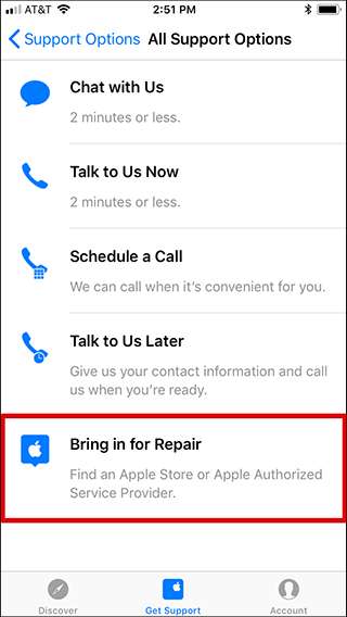 במקרים מסוימים, אפל מכוונת אותך להתקשר, לשלוח דוא"ל או לשוחח בצ'אט עם התמיכה תחילה, כך שתצטרך לעשות קצת חפירות כדי למצוא את האפשרות לקבוע פגישה של Genius Bar.