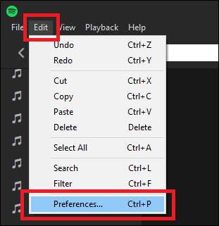 כדי להשבית את תכונת שיתוף העדכונים, התחל על ידי כניסה להעדפות Spotify שלך על ידי לחיצה על הכרטיסייה "ערוך" בפינה השמאלית העליונה ובחר "העדפות".