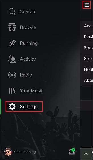 אם אתה משתמש רק ב- Spotify בצורה ניידת, תוכל לשנות את כל אותן הגדרות על ידי פתיחה ראשונה של תפריט ההגדרות בתוך האפליקציה: