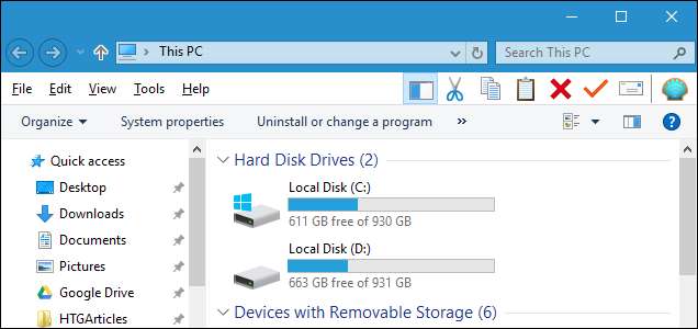 הערה: אינך צריך לבצע את כל השינויים הבאים, כמובן - אתה יכול פשוט לבצע את השינויים שאתה באמת רוצה. אבל כדי לקבל את החוויה הכי דומה ל- Windows 7 בסייר הקבצים, תזדקק לכולם.