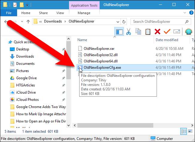 לאחר מכן, חילץ את הקובץ שהורדת לתיקיה זו בעזרת כלי כמו 7-Zip . OldNewExplorer אינו מותקן כמו תוכניות אחרות. ראשית, הפעל את התוכנית על ידי לחיצה כפולה על הקובץ OldNewExplorerCfg.exe.