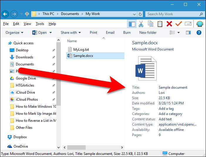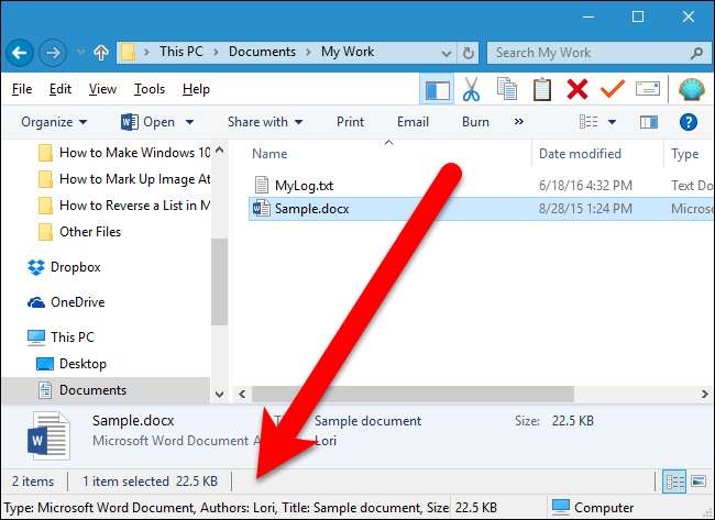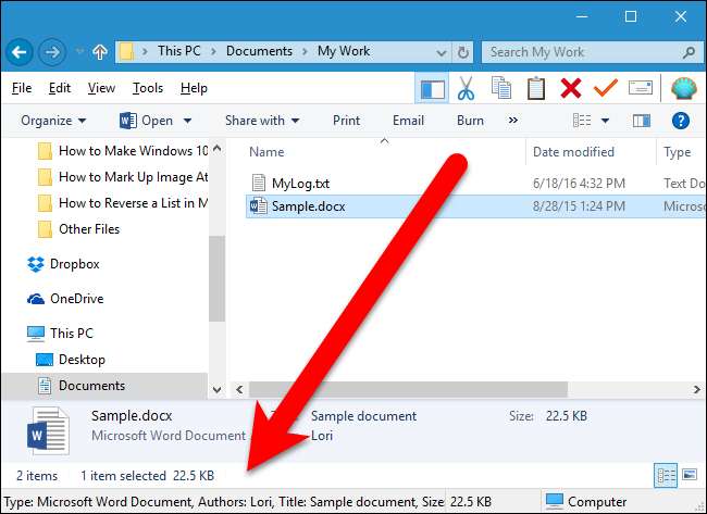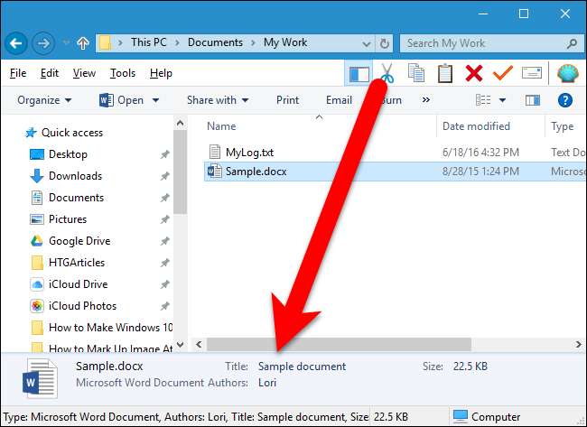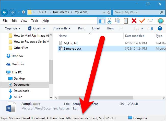 הערה: אם החלפת את הסרט בשורת הפקודה בסעיף הקודם, תוכל להציג את חלונית הפרטים על ידי בחירה בארגון> פריסה> חלונית פרטים. אם לא, לחץ על הכרטיסייה "תצוגה" ואז לחץ על "חלונית פרטים" בקטע חלוניות.