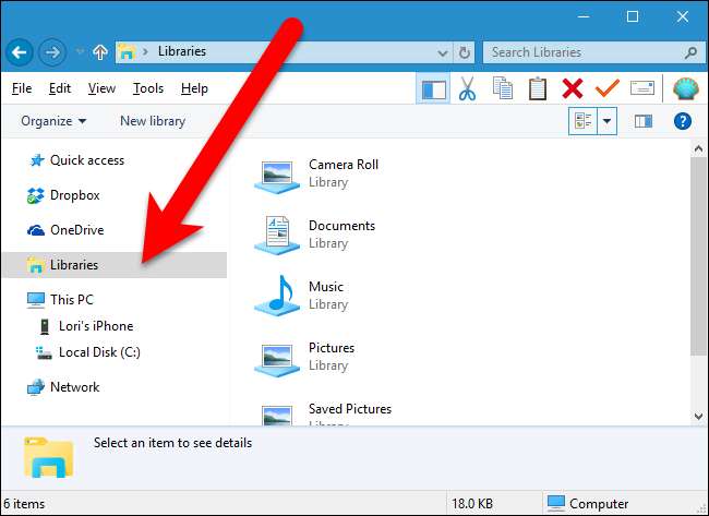 אפשר ספריות בחלונית הניווט והסתיר את קבוצת התיקיות ב"מחשב זה "