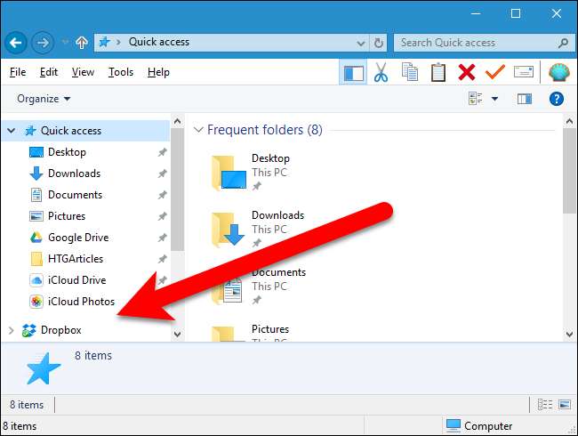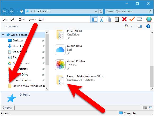 ה רשימת גישה מהירה בסייר הקבצים מחליף את רשימת המועדפים הישנה מ- Windows 7, ומהווה עיצוב מחדש קל של רשימת המועדפים. כמו סייר Windows ב- Windows 7, רשימת הגישה המהירה בסייר הקבצים מכילה תיקיות מועדפות המוצמדות לרשימה זו. Windows 7 אפשר לך להתאים אישית את רשימת המועדפים, אך מיקרוסופט חשבה שהם יעזרו ויוסיפו תיקיות בשימוש תכוף לרשימת הגישה המהירה בסייר הקבצים של Windows 10, לאנשים שמעולם לא התאימו אישית את רשימת המועדפים שלהם עם התיקיות הנפוצות ביותר.