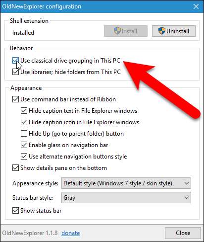 אתה יכול לחזור בקלות לקיבוץ הכוננים הקלאסי של Windows 7. לשם כך, חזור לתיבת הדו-שיח תצורת OldNewExplorer (או פתח אותה שוב אם סגרת אותה) וסמן את התיבה "השתמש בקיבוץ כוננים קלאסי במחשב זה".