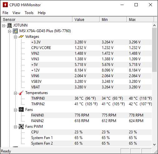 באופן כללי, טמפרטורות המעבד שלך יהיו הטמפרטורות החשובות ביותר לפקח. אבל, אם אתה רוצה לראות טמפרטורות בכל המערכת שלך - לוח האם, המעבד, כרטיס המסך והכוננים הקשיחים - HWMonitor נותן לך את זה ועוד הרבה יותר.