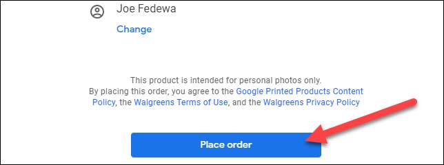 יש מגוון רחב של אפשרויות עבור הדפסת תמונות עם תמונות Google . ניתן להזמין הדפסים להרים בחנות כולבו מקומית, Walgreens, או Walmart. אם אתה לא רוצה לעשות את זה, הם יכולים גם להיות יועברו אליך.