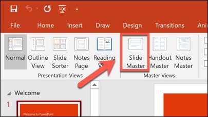 כדי להתחיל, לפתוח מצגת PowerPoint של מיקרוסופט ולבחור צג & gt; חלק מאסטר.