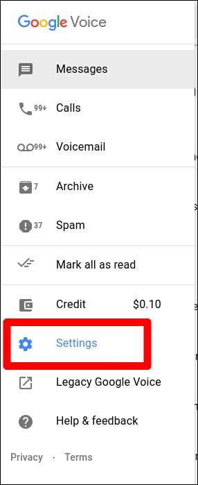 ראשון, להפעיל את Google Voice ופתח את תפריט ההגדרות על ידי החלקה בתפריט מצד שמאל ובחירה באפשרות "הגדרות".