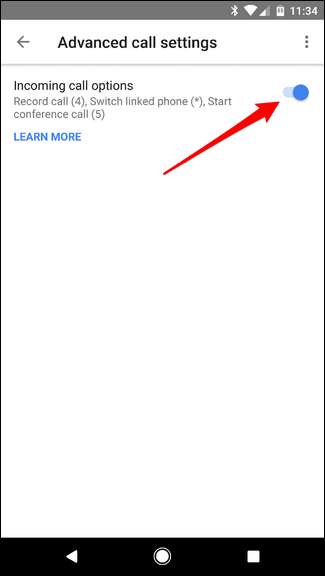 האפשרות האחרונה באינטרנט היא "אפשרויות שיחה נכנסות", שם תוכל לאפשר לתכונה להקליט שיחות או להתחיל שיחת ועידה. השתמש במחוון כדי לאפשר זאת.