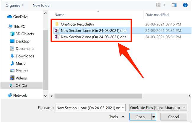 חלון יפתח מציג את המחברות שלך (כתיקיות) שהוגברו. לחץ פעמיים על התיקייה המחברת שברצונך לשחזר הערות, ולאחר מכן בחר את סעיף הערות ולחץ על "פתח".