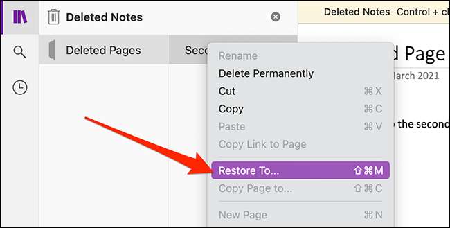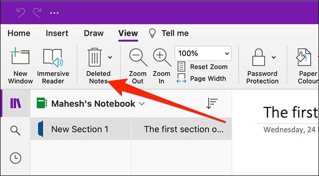 OneNote עבור Mac גם אינו מחייב אותך לפתוח קובץ גיבוי לשחזור הערות. אתה יכול להשתמש מובנה אפשרות ביישום למצוא ולשחזר ההערות שנמחקו שלך.