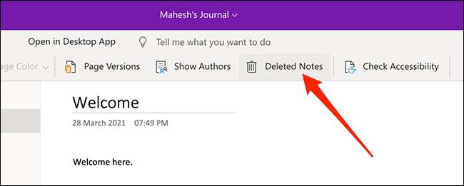 ראש מעל OneNote באינטרנט ולהיכנס לחשבון שלך כדי להתחיל הערות התאוששות. לאחר מכן, לחץ על התצוגה & GT; אפשרות הערות שנמחקו כדי להציג את ההערות האבודה שלך.
