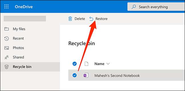 אם נמחקת מחברת שלמה, יהיה עליך לשחזר אותו ב- OneDrive הראשון לפני השימוש בו ב- OneNote עבור האינטרנט. מחשב נייד זה יכול להיות התאושש מתוך סל המיחזור של OneDrive כל עוד זה לא כבר 30 ימים מאז שתחקן אותו.