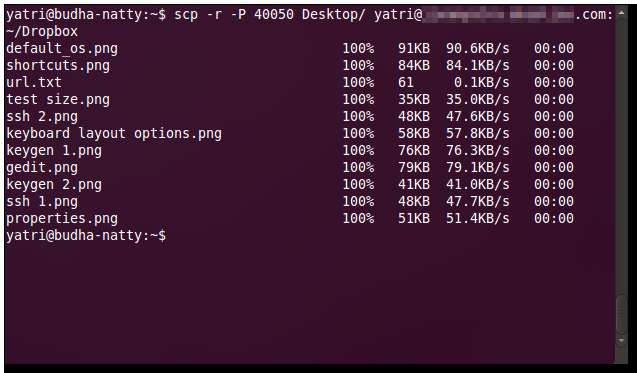 הנה העתקתי קובץ מהתיקייה "~ / Desktop /" של המחשב המרוחק לתיקיית "Desktop" של המחשב שלי.