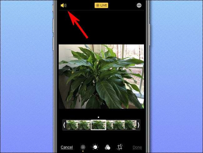 למרות שיש לך לשבת את האודיו עבור תמונה מסוימת, iPhone שלך שומר עותק של התמונה המקורית לחיות עם אודיו כלול במקרה שאתה משנה את דעתך. אז אם אתה צריך לקבל את הקול בחזרה, לפתוח "תמונות", הקש שוב, הזן "מצב עריכה", הקש על סמל "Live Photo", ולהחליף את כפתור הרמקול בחזרה. אז השמע ישוחזר.