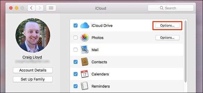 משמאל ל"כונן iCloud ", לחץ על" אפשרויות ".