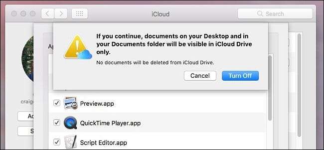 תקבל קופץ המזהיר אותך שקבצים אלה יאוחסנו רק בכונן iCloud אם תשבית את סנכרון שולחן העבודה והמסמכים. המשך ולחץ על "כבה".