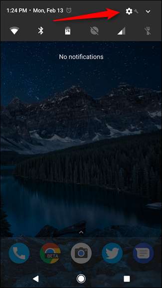 ראשית, קפצו לתפריט ההגדרות. אתה יכול לעשות זאת על ידי משיכת מטה על גוון ההודעות והקשה על סמל גלגל השיניים.
