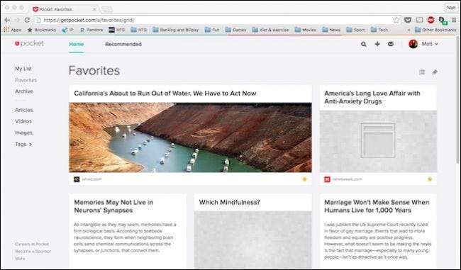 יתר על כן, גם אם אינך משתמש במק או שאף פעם אינך רוצה להשתמש באחת מהאפליקציות, אתה יכול לעשות הכל מהאתר שהאפליקציות יכולות לעשות. פירוש הדבר שאתה לא מפסיד את התכונות ואתה שומר על אותו סוג של שליטה במאמרים ובסיפורים שלך. מסיבה זו, ורבים אחרים, זה עדיין בולט כדרך האהובה עלינו לסלק דברים שעלינו לשמור או לרצות לקרוא בהמשך.