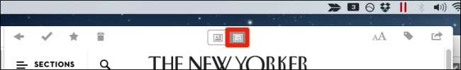 באפליקציית OS X, כאשר תלחץ על הסמל שמוצג באדום, הוא יפתח את המאמר המקורי (מודעות והכל) בדפדפן המובנה של Pocket.