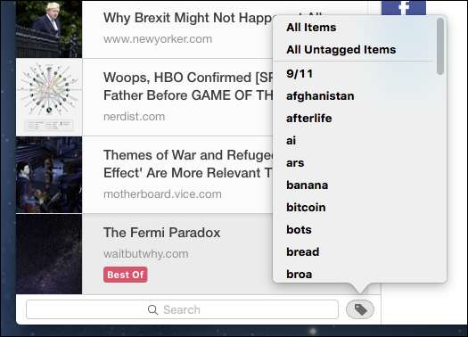 לבסוף, בתחתית רשימת המאמרים שלך, יש סמל תגים שיאפשר לך למיין את הדברים שלך לפי תגים. משמאל לסמל זה, תוכל גם להשתמש בתכונת החיפוש.
