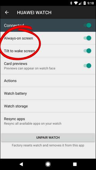 ישנן שתי הגדרות שתוכל לצבוט כאן כדי לסייע במלחמה נגד חיי הסוללה לקויים: תמיד על המסך ועל הטיה למסך. שתי ההגדרות די מסבירות את עצמן, אך הנה סקירה מהירה בכל מקרה:
