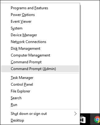 כדי להפעיל כלי עזר זה ב- Windows, יהיה עליך לפתוח את שורת הפקודה במצב מנהל. לחץ באמצעות לחצן העכבר הימני על תפריט התחל או לחץ על Windows + X במקלדת ובחר "שורת פקודה (מנהל מערכת)" מתפריט כלי ניהול. אתה יכול גם פשוט להשתמש קיצור המקשים הנחמד הזה .