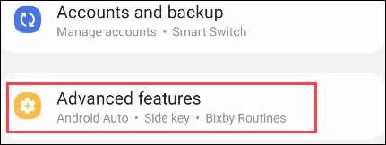 גלול מטה אל "תכונות מתקדמות" ובחר אותה.