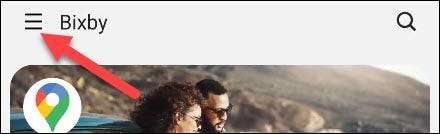 לאחר Bixby מוכן ללכת, אתה רוצה לוודא כי פקודת השכמה מופעלת. זה איך אתה יכול לקחת צילום מסך ללא הפתיחה ידנית bixby. פתח את היישום Bixby והקש על תפריט המבורגר סמל בפינה השמאלית העליונה.