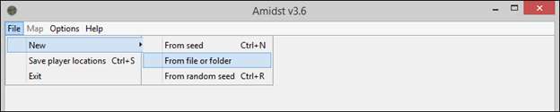 כאשר האפליקציה נטענת תראה רק מסך אפור עם שורת תפריטים. לחץ על "קובץ -> חדש" ואז בחר "מזרע" להזנת הזרע שלך; "מקובץ או מתיקיה" כדי לפתוח קובץ level.dat קיים; או "מזרע אקראי" אם אתה רוצה לחיות את החיים המטורפים ולראות מה הגנרטור יוצר עבורך.