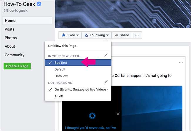 כעת תראה פוסטים על פי הדף תחילה בעדכון החדשות שלך, ו (אופציונלי) תקבל כמה התראות ביום כשהוא מפרסם. ברור שאינך צריך להפעיל את שתי האפשרויות. אם אתה רק רוצה לראות את זה קודם או לקבל התראות, אתה יכול.