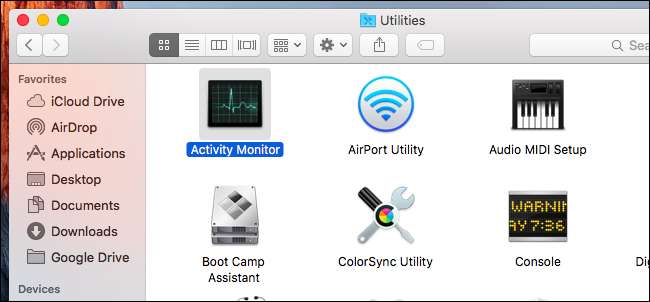 עם זאת, אתה יכול לבדוק רשימה של אילו אפליקציות השתמשו ביותר הסוללה. מידע זה נמצא ב יישום צג פעילות שימושי תמיד . כדי לגשת אליו, תוכל ללחוץ על שם יישום תחת "יישומים המשתמשים באנרגיה משמעותית" בתפריט מצב הסוללה. אתה יכול גם לפתוח את צג הפעילות ישירות. לשם כך, לחץ על Command + Space כדי לפתוח את חיפוש הזרקורים, הקלד "צג פעילויות" ולחץ על Enter. ניתן גם לפתוח חלון Finder, לבחור בתיקיה "Applications" בסרגל הצד, ללחוץ פעמיים על התיקיה "Utilities" וללחוץ פעמיים על אפליקציית "Monitor Monitor".