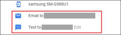 הנה המקום שבו תוכל גם להבחין באפשרות לטקסט או לשלוח את ההוראות לעצמכם אם יש לך את מספר הטלפון או כתובת הדואר האלקטרוני שלך לחשבון Google שלך.