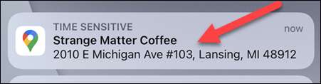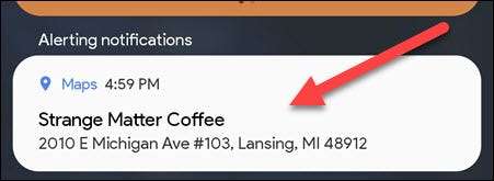 זה נראה שהתהודעה כאשר היא מופיעה במכשיר אנדרואיד. הקש עליו כדי לפתוח את המיקום ב- Google Maps.