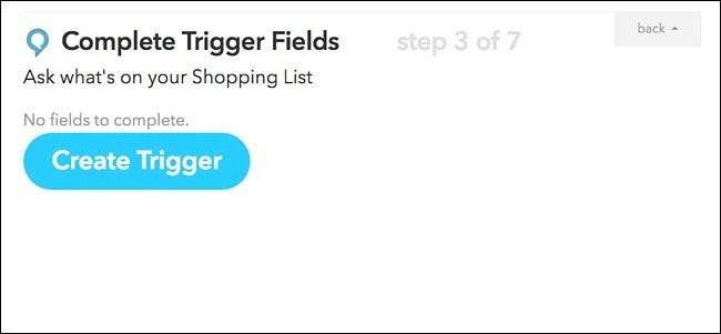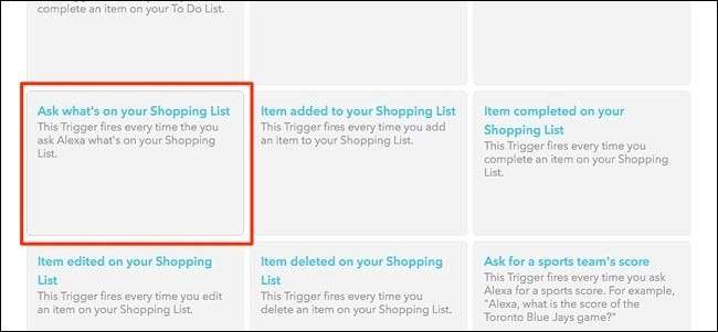 לאחר מכן בחר "שאל מה יש ברשימת הקניות שלך" מתוך מבחר הטריגרים הזמינים.