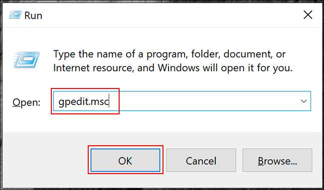 ולאחר מכן לחץ על "אישור" כדי לפתוח את עורך המדיניות הקבוצתית המקומית.