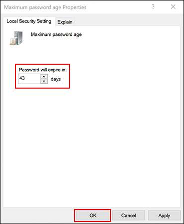 תאריך התפוגה של חשבונות מקומיים במחשב שלך מוגדר כעת לאורכם המועדף. לאחר שחלפה תקופה זו, Windows יבקש ממך לאפס את הסיסמה שלך.