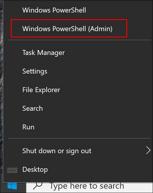 כדי להתחיל, לחץ באמצעות לחצן העכבר הימני על תפריט התחל ולאחר מכן לחץ על "Windows PowerShell (מנהל מערכת)" או "שורת פקודה (מנהל מערכת)", בהתאם לגירסת Windows שלך.
