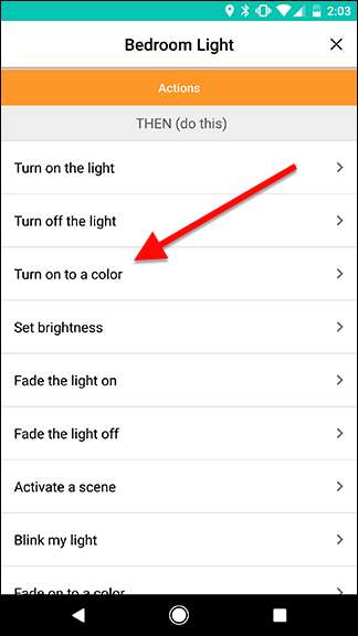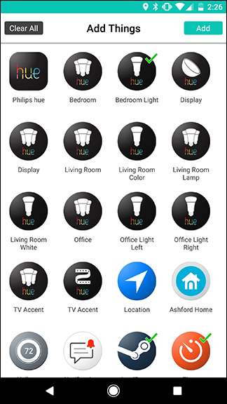 ברשימת הדברים בחר באדים, באור הגוון בחדר ילדיך (או באור שבו תרצה להשתמש) ובטיימר. נוסיף את דבר ההודעות בהמשך.